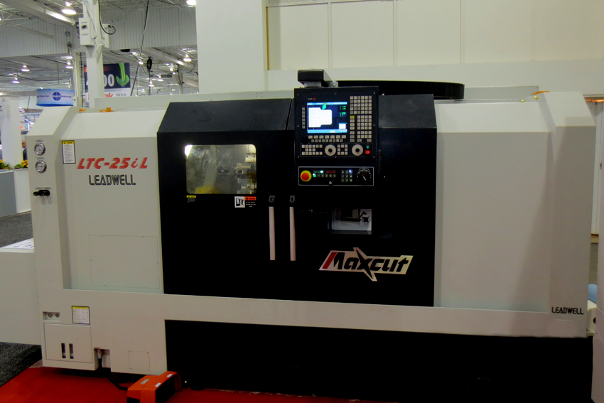 Leadwell presentó un novedoso modelo de torno de bancada inclinada. Este torno, que atrajo a multitud de visitantes, estaba equipado con eje C e Y, siendo gobernado por un CNC 8055.